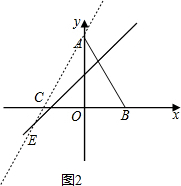 当点E在y轴左侧时,过A、E作直线交x轴于点C,如图2,![]()