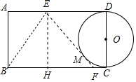 解答 解:如图,设⊙O与EF相切于M,连接EB,作EH⊥BC于H.![]()