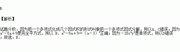 B、a2-6a+9=(a-3)2