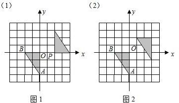 (1)将△OAB关于点P(1,0)对称,在图1中画出对称后的图形,并涂黑;