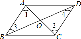 分析:(1)首先根据平行线的性质可得∠1=∠2,∠3=∠4.然后再利用AAS定理证明△AOB≌△COD;