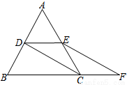 如图,等边△ABC的边长是2,D、E分别为AB、AC的中点,延长BC至点F,使CF=