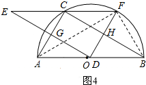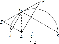 (3)连接OC,易证△AOC是等边三角形,AD=OD,根据等腰三角形的“三线合一”可求出∠ACD,进而可求出∠ECO=90°,从而得到EF与半圆相切.
