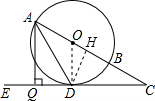 分析:(1)连接OD,根据三角形外角的性质可得∠ADE=∠DAC+∠C,易求∠DAC=30°,而OD=OA,可得∠DAC=∠ODA=30°,从而可求∠ODE=90°,易证CD是⊙O的切线;