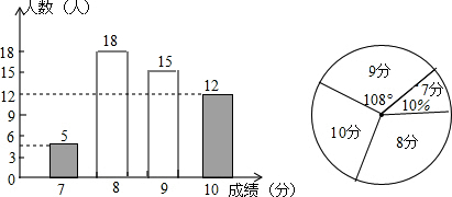 则得分是:8分的人数是:50-5-15-12=18(人),