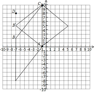 解答 解:如图所示:当B(-7,2),B′(-7,5)时,都可以得到以A、B、C、D四个点为顶点的四边形是菱形,同理可得:当D(-7,8)则对应点C的坐标为;(-7,18)可以得到以A、B、C、D四个点为顶点的四边形是菱形,故n的值为:2,5,18.故答案为:2,5,18.