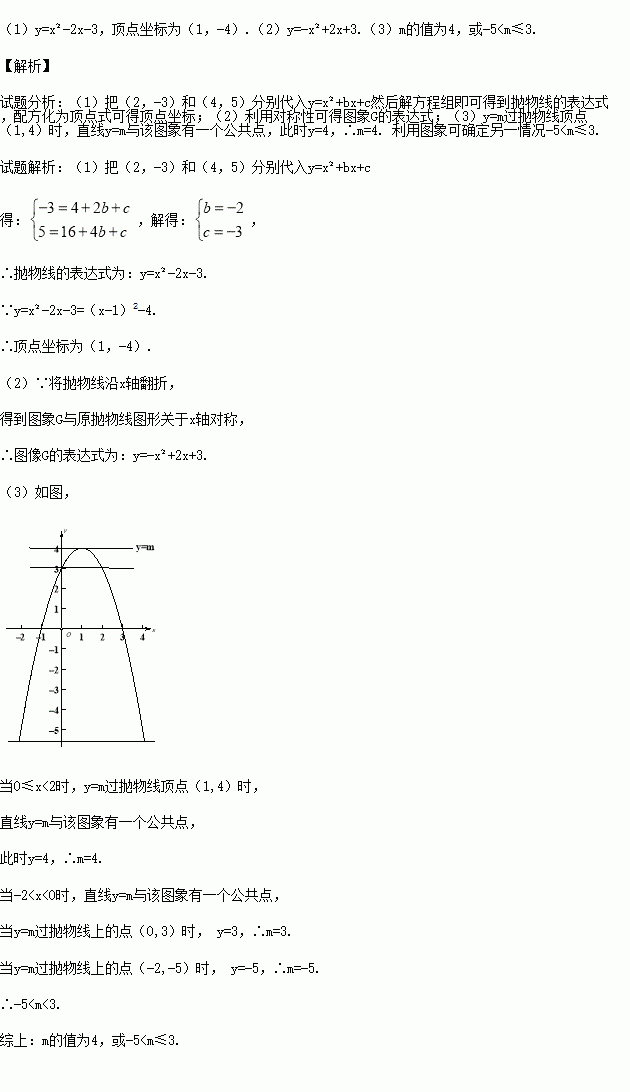 已知:抛物线y=x2+bx+c经过点(2,-3)和(4,5).