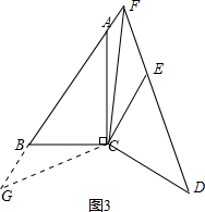 如图3,延长AB至G,使BG=CF,连接CG