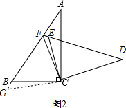 (2)如图2,延长AB至G,使BG=CF,连接CG,![]()