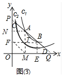 (3)如图③中,由此AB、BA分别交x轴、y轴于Q、P.作AM⊥OQ于M,AN⊥OP于N,BE⊥OQ于E,BF⊥OP于F.AM交BF于T.由S矩形AMON=S矩形BEOF,推出S矩形ATFN=S矩形BEMT,推出AT•FT=TM•TB,推出$\frac{AT}{TB}$=$\frac{TM}{AT}$,由∠MTF=∠ATB,推出△ATB∽△MTN,推出∠ABT=∠MFT,推出FM∥PQ,推出四边形APFM、S四边形BQMF都是平行四边形,推出PA=FM=BQ,由此即可解决问题.