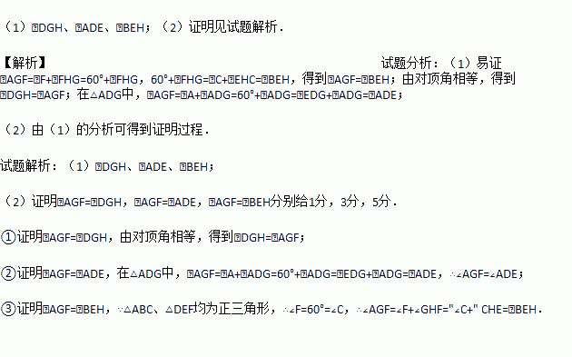 (2)对于(1)中的几个角,请你选择一个角证明与∠AGF相等(本小题将按照证明难度的大小分别给分,难度越大给分越多).