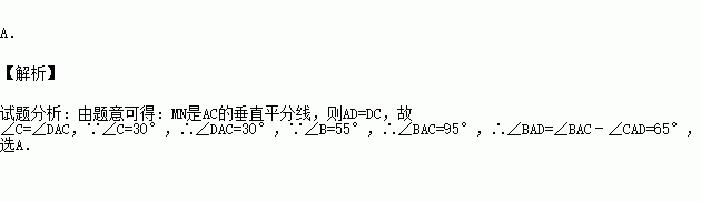 A.65° B.60° C.55° D.45°