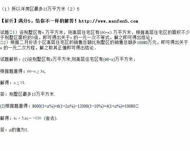 Íòƽ·½Ã×£¬ÇҸ߲ã×¡Õ¬ÇøµÄÃæ»ý²»ÉÙÓÚ±ðÊûÇøÃæ»ýµÄ![]()