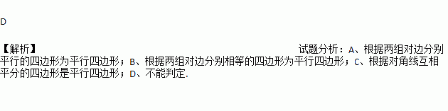 四边形ABCD中,对角线AC、BD相交于点O,下列条件不能判定这个四边形是平行四边形的是( )