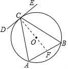 解答 解:过C作CF⊥AB,∵CA=CB,∴F为AB中点,即CF垂直平分AB,∴△ABC外心O在CF上,∵DE∥AB,∴FC⊥DE,则DE为圆O的切线.