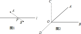 (1)A、B是公路l两旁的两个村庄,现要在公路边修一个公交站方便村民出行,问应修在什么地方能使公交站到两个村庄的距离之和最短?请在图1中表示公交站点P的位置,并说明你的理由.