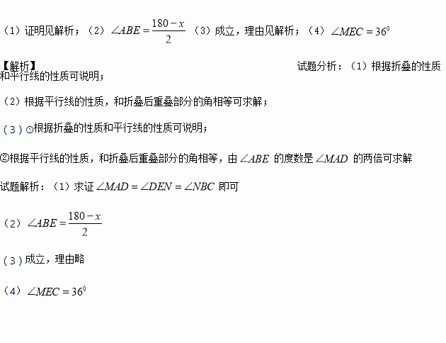 如图1,将一条两边沿互相平行的纸带折叠(AM//BN,AD//BC),AB为折痕,AD交BN于点E.