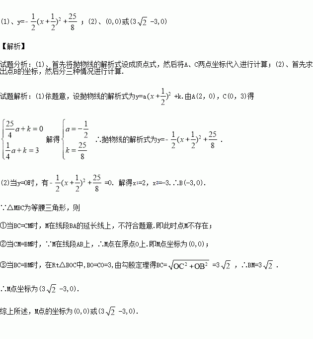 (2)M是线段AB上的任意一点,当△MBC为等腰三角形时,求M点的坐标.