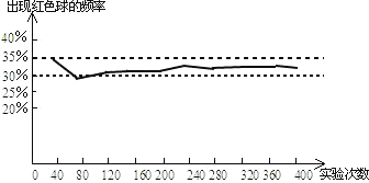 | 摸球次数 | 40 | 80 | 120 | 160 | 200 | 240 | 280 | 320 | 360 | 400 |