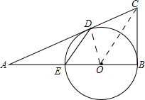 分析 (1)如图所示:连接OD、OC,先证明Rt△COD≌Rt△COB,∠DOC=∠BOC,然后由OD=OE,得到∠DEO=∠EDO,结合三角形外角的性质可知∠DE0=∠COB,从而得到DE∥OC,由平行线的性质可知∠DCO=∠ADE,故此∠C=2∠ADE;