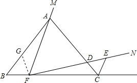 ∵∠AFC=∠B+∠BAF=∠AFD+∠CFE,∠MFE=60°,