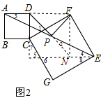 (2)延长DP到N,使PN=PD,连接FD、FN、EN,延长EN与DC延长线交于点H.证明△DCF≌△NEF,即可得到线段PD,PF的位置及数量关系.