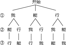 某校请励志大师对学生进行“励志讲座”,讲座开始前,主持人邀请一个同学上台做小游戏,有三张不透明的卡片,除正面分别写有“我”、“能”、“行”不同的字外,其余均相同,将三张卡片背面朝上洗匀后,该同学第一次从中随机抽取一张粘在横幅上①号位置,第二次从余下的两张卡片中再随机抽取一张粘在②号位置,最后一张粘在③号位置,若恰好组成讲座的主题“我能行”,即能得到纪念品一份,用树状图或列表法求该同学能得到纪念品的概率是多少?