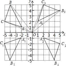 (2)根据关于原点对称的点的坐标特征写出点A、B、C的对应点A2、B2、C2的坐标,然后描点即可得到△A2B2C2;