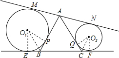 解:如图,设切点分别为M、N、E、F、P、Q,连接O1E,O1P,O1B,O2Q,O2C,O2F,