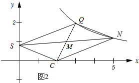 如图2所示:当CM=QM,SM=NM时,四边形SCNQ为平行四边形.![]()