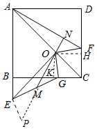 分析 如图,作OH⊥CD于H,OK⊥BC于K,延长OM到P使得MP=OM,首先证明△OKG≌△OHF,推出OF=OG,再证明△EOP≌△OAF,推出AF=OP,根据S△AOF=$\frac{1}{2}$•AF•ON=S△ADC-S△ADF-S△OCF,求出ON,再求出OM即可解决问题.