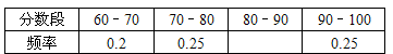 某校500名学生参加生命安全知识测试,测试分数均大于或等于60且小于100,分数段的频率分布情况如表所示(其中每个分数段可包括最小值,不包括最大值),结合表的信息,可测得测试分数在80~90分数段的学生有 名.