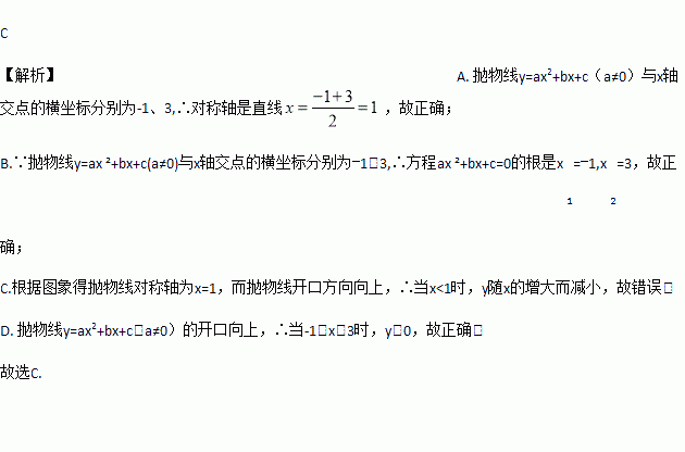 如图,抛物线y=ax2+bx+c(a≠0)的开口向上,与x轴交点的横坐标分别为-1、3,则下列说法错误的是( )
