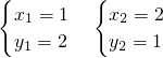 解得y1=2,y2=1,