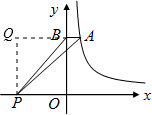 分析:设A的坐标为(a,b),延长AB,过P作PQ垂直于AQ,交AB延长线于点Q,将A的坐标代入反比例函数解析式中,得到ab=4,三角形ABP中AB为底,PQ为高,利用三角形的面积公式求出即可.