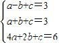 把A(-1,3)、B(1,3)、C(2,6)各点代入上式得
