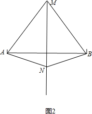 ∴∠NAB=∠NBA=15°,∠MAB=∠MBA=60°,