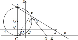 (4)设直线DF与直线CE的交点为E,连接CF,根据圆周角定理可知△CFP是直角三角形,而CG、CF同为⊙M的切点,即CG=GF,所以点G即为斜边CP的中点,由此可得点P的坐标,根据D、P的坐标,即可用待定系数法求得直线DF的解析式.