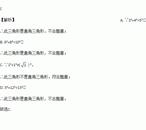 如果下列各组数是三角形的三边,那么不能组成直角三角形的一组数是 ( )