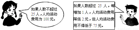 如果人数超过25人,每增加1人,人均活动费用降低2元,但人均活动费用不得低于75元.