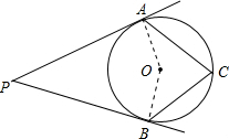 分析 连接OA和OB,根据切线的性质可得∠PAO=∠PBO=90°,又根据同弧所对的圆心角等于它所对圆周角的2倍,由∠ACB的度数求出∠AOB的度数,在四边形APBO中,根据四边形的内角和为360°,即可求出所求角的度数.