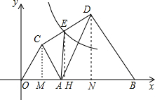 把E(4,$\frac{5\sqrt{3}}{2}$)代入y=y=$\frac{k}{x}$得k=4×$\frac{5\sqrt{3}}{2}$=10$\sqrt{3}$;