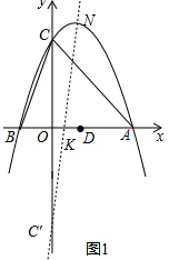 Èçͼ1£¬×÷µãC¹ØÓÚxÖáµÄ¶Ô³ÆµãC¡ä£¨0£¬-4£©£¬Á¬½ÓC¡äN½»xÖáÓÚµãK£¬ÔòKµã¼´ÎªËùÇó£¬![]()