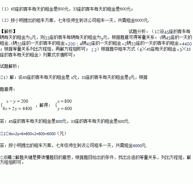 (1)客运公司45座和33座的客车每辆每天的租金分别是多少元?