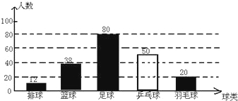 2010年亚运会即将在广州举行,广元小学开展了“你最喜欢收看的亚运五项球比赛(只选一项)”抽样调查.根据调查数据,小红计算出喜欢收看排球比赛的人数占抽样人数的6%,小明则绘制成如下不完整的条形统计图,请你根据这两位同学提供的信息,解答下面的问题: