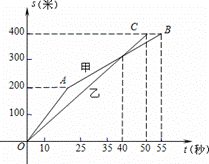 如图,在甲、乙两同学进行的400米跑步比赛中,路程s(米)与时间t(秒)之间函数关系的图象分别为折线OAB和线段OC,根据图象提供的信息回答以下问题: