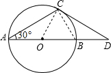 分析:首先连接OC,BC,由AB是⊙O的直径,BD=OB,∠CAB=30°,易得△OBC是等边三角形,△ACD是等腰三角形,继而可得CD是⊙O的切线.