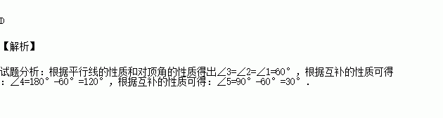 A.∠2=60° B.∠3=60° C.∠4=120° D.∠5=40°