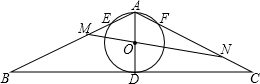 (2)若以AD为直径的⊙O恰与BC边相切,⊙O交AB于E,交AC于F.过O点的直线MN分别交线段BE和CF于M,N,且AM:MB=3:5,则AN:NC的值为