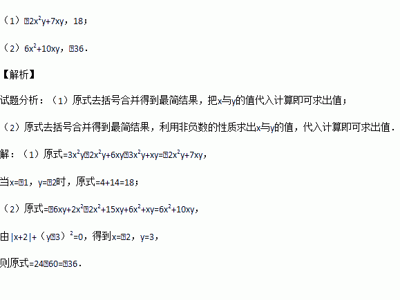 (1)先化简,再求值:3x2y﹣[2x2y﹣3(2xy﹣x2y)﹣xy],其中x=﹣1,y=﹣2